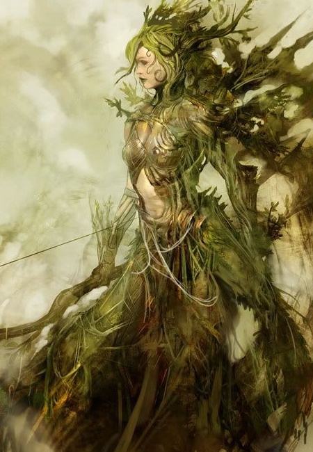 The dryad is a powerful spirit of the woods, intimately linked to trees and nature. It makes its home in oak trees and lives in secluded woodlands, preferring the company of plants, animals and trees to any other living things, including their own.